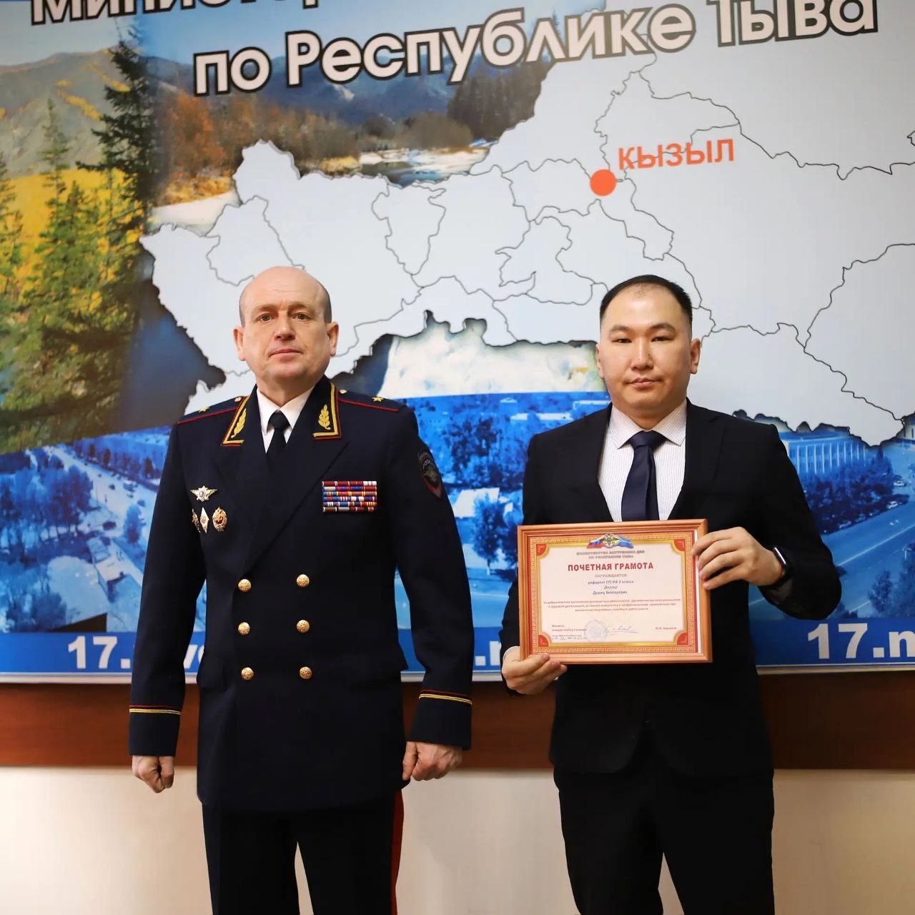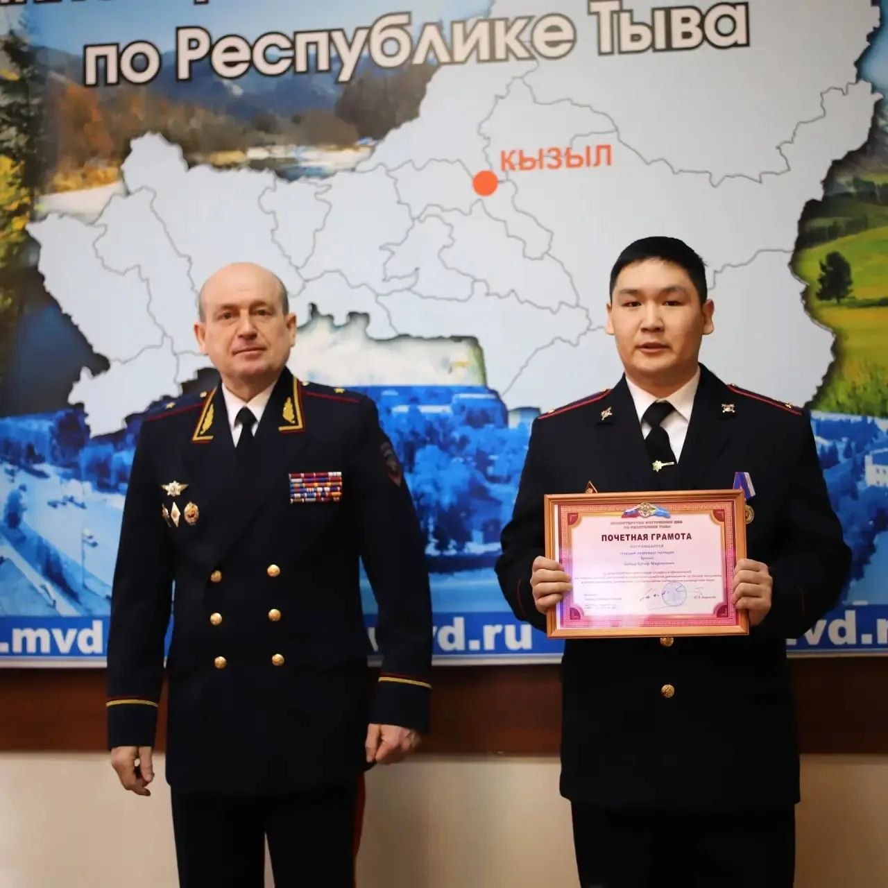 Преемственность поколений: в МВД по Республике Тыва прошло награждение отличившихся сотрудников, в числе которых члены полицейской династии