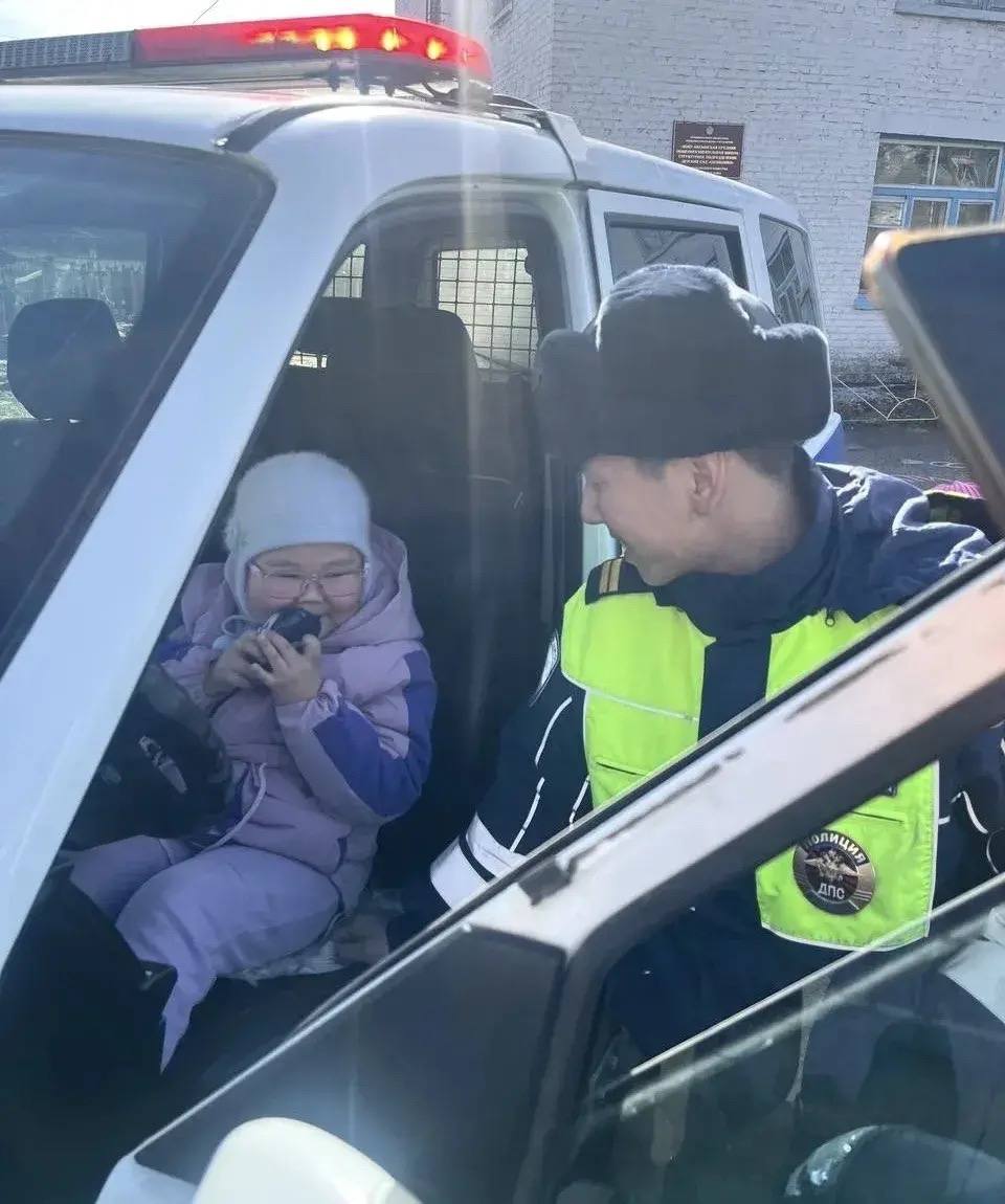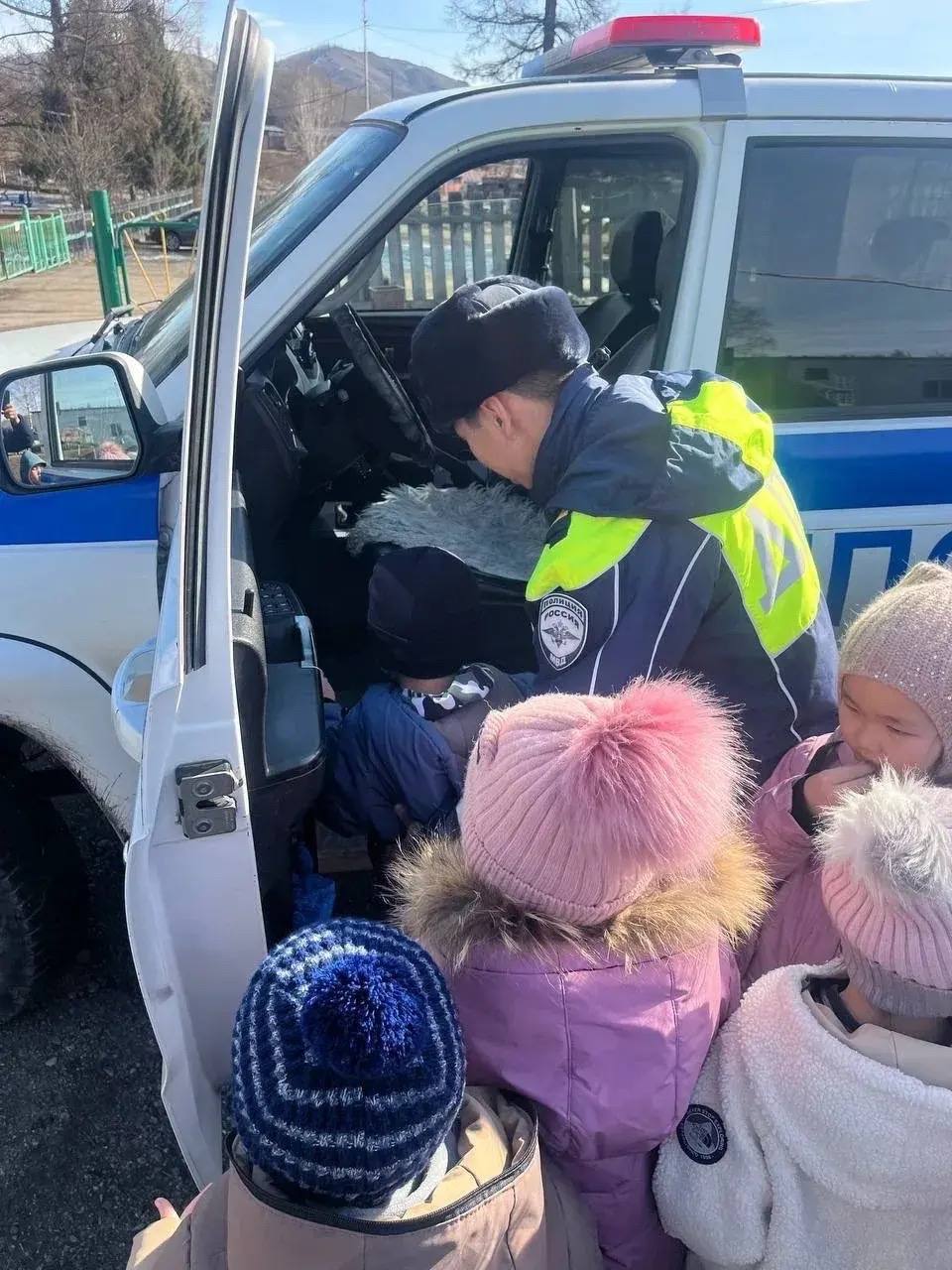 Затем занятие переросло в мини-экскурсию, было необычное знакомство детей с патрульным автомобилем ДПС.
