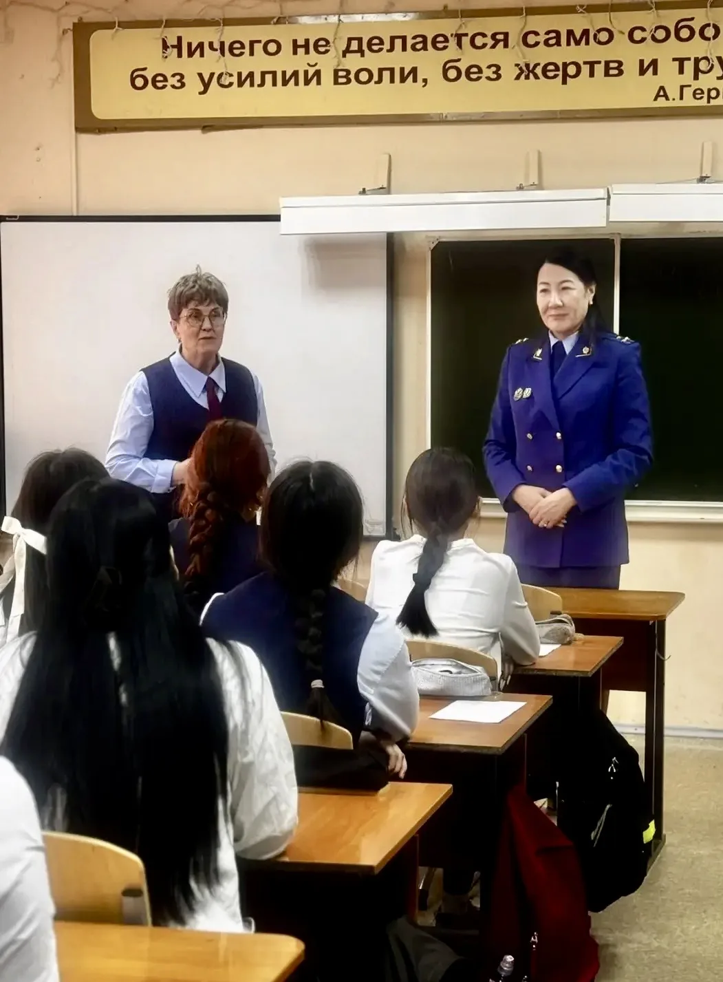Заместитель прокурора республики Ольга Монгуш провела профориентационный урок для учащихся МАОУ «Лицей № 15 имени Героя Советского Союза Н.Н.Макаренко г.Кызыла».