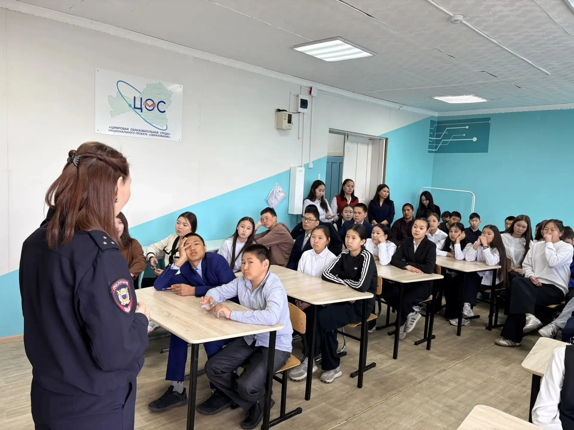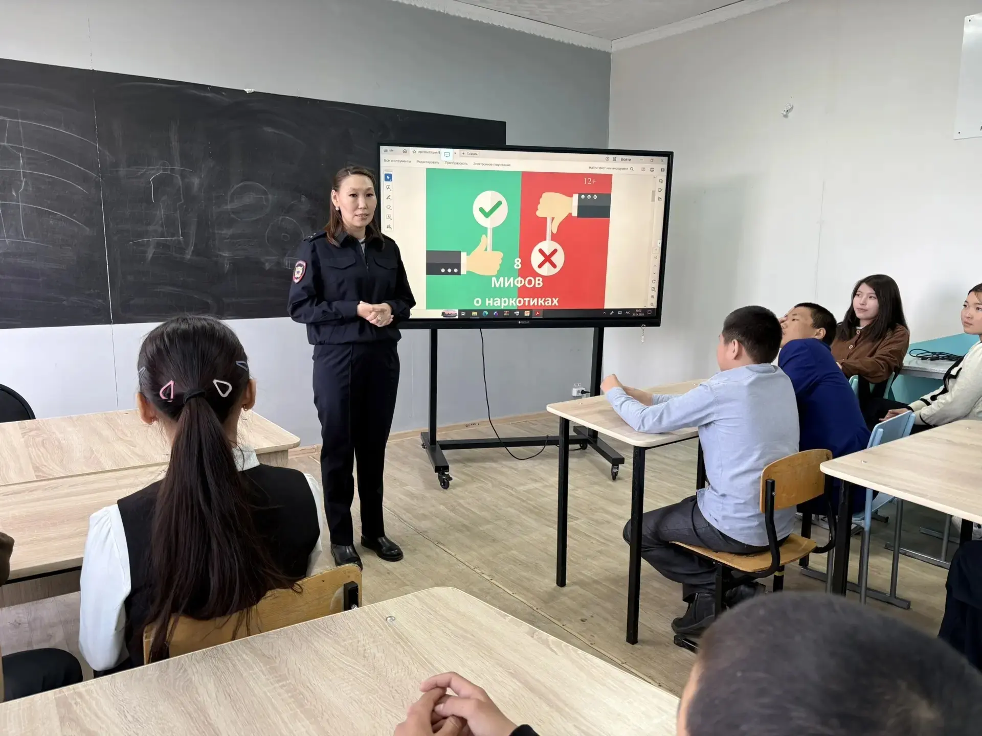 Сотрудники Управления по контролю за оборотом наркотиков МВД по Республике Тыва посетили образовательные организации, где провели встречи с учащимися с 7 по 11 классы в школах с. Суг-Бажи, Бурен-Хем, Кундустуг и Бояровка.