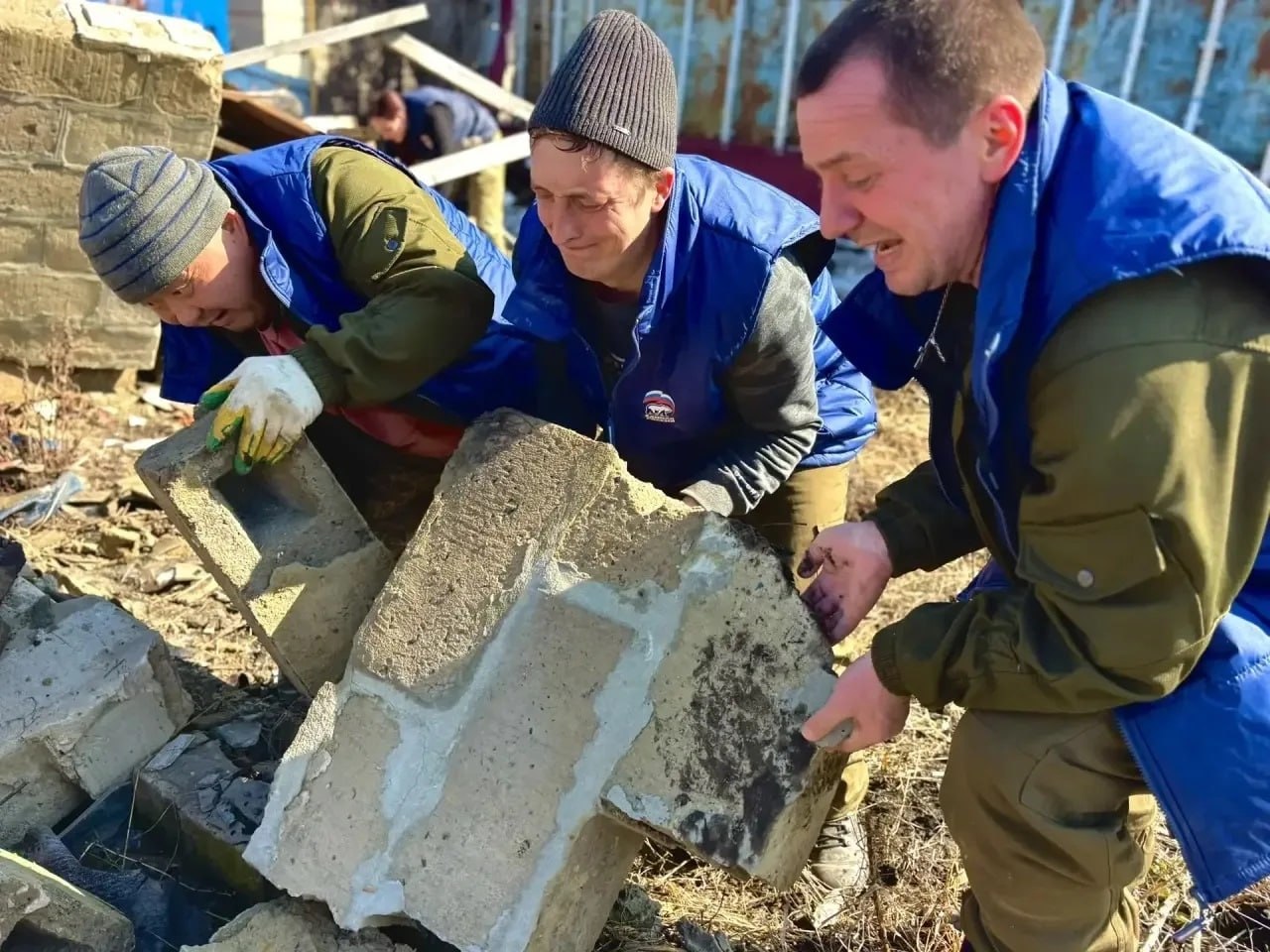 Волонтеры помогают восстанавливать жилые дома и социальные объекты, пострадавшие от обстрелов. В интернациональную бригаду вошли представители Москвы, Республики Марий Эл, Нижегородской, Тюменской, Ленинградской областей, Красноярского края, ДНР и Тувы.