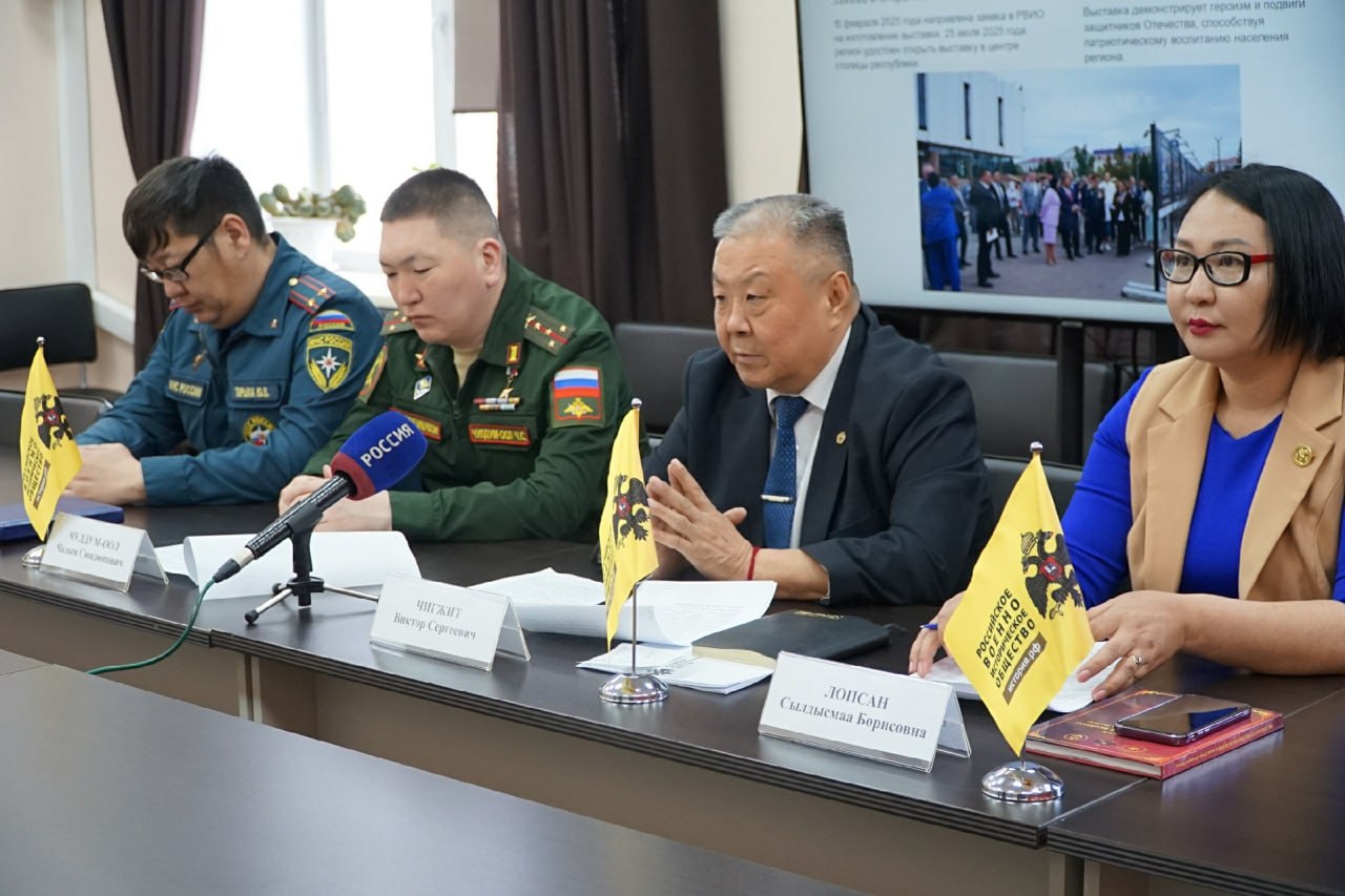 В Министерстве культуры Тувы состоялась пресс-конференция по итогам работы регионального отделения Российского военно-исторического общества (РВИО). В мероприятии приняли участие министр культуры, председатель Тувинского регионального отделения РВИО Виктор Чигжит, члены регионального отделения РВИО - Герой России Чалым Чулдум-оол, директор Тувинской республиканской детской библиотеки им. К. Чуковского Сылдысмаа Лопсан и начальник отдела Управления надзорной деятельности и профилактической работы Главного управления МЧС России по РТ Юрий Тарыма.