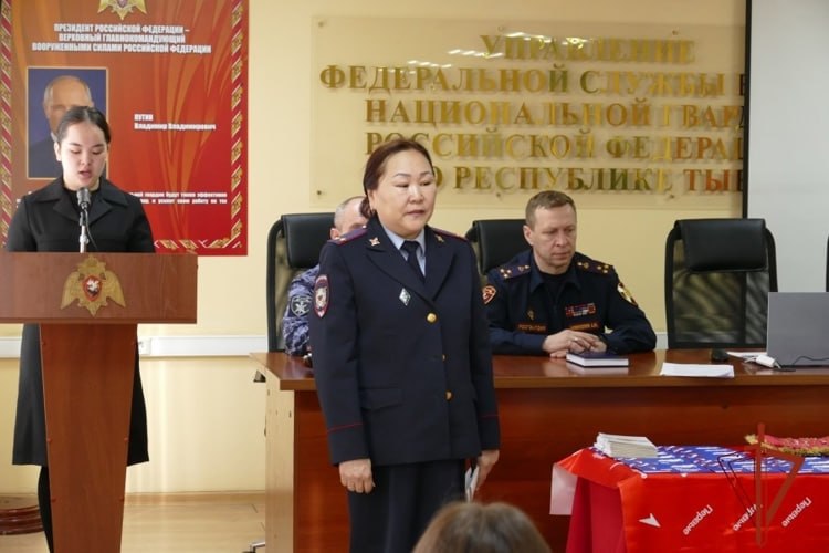 Паспорта пятнадцати подросткам вручили руководитель Управления Росгвардии по Туве, полковник полиции Алексей Корниенко и начальник отдела по вопросам миграции УМВД по г. Кызылу, подполковник Виктория Оттол.