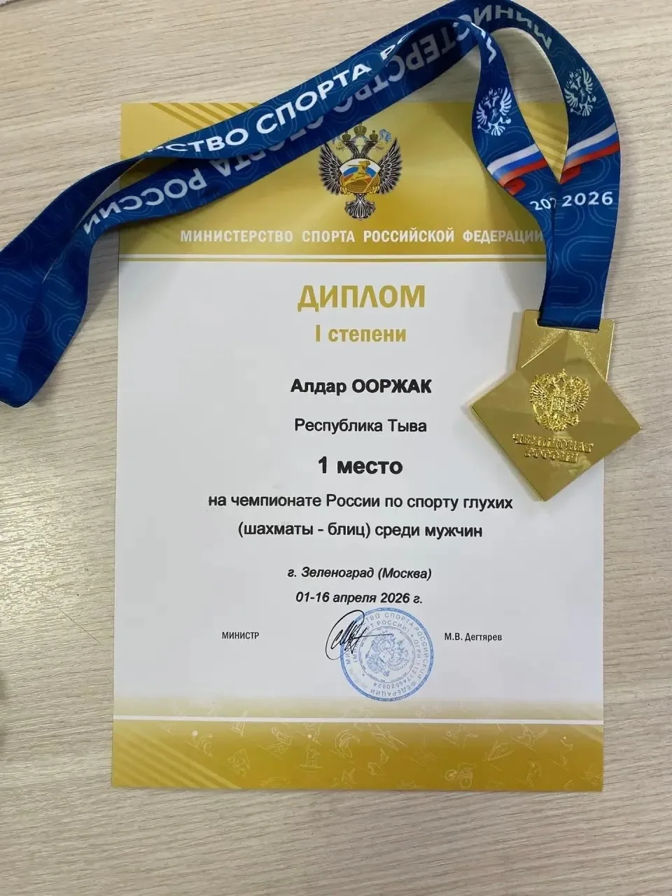 С 1 по 16 апреля в городе Зеленограде Московской области прошел чемпионат России по шахматам (блиц) среди глухих спортсменов. По итогам соревнований звание чемпиона России завоевал Алдар Ооржак.