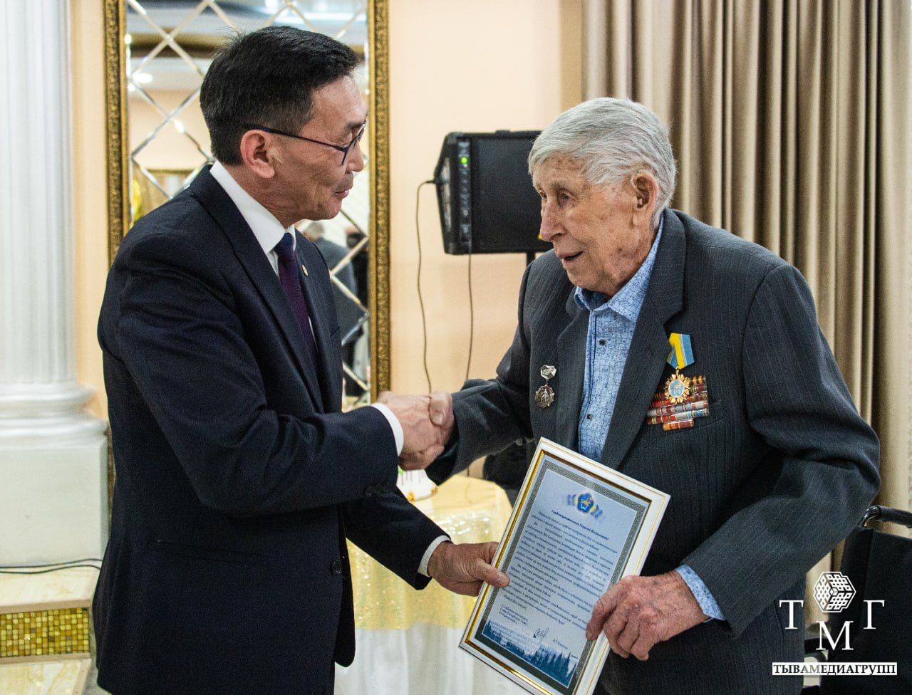 Высокую награду фронтовику вручил заместитель председателя Правительства Тувы Орлан Сарыглар, который также зачитал поздравительные слова от Главы республики Владислава Ховалыга.