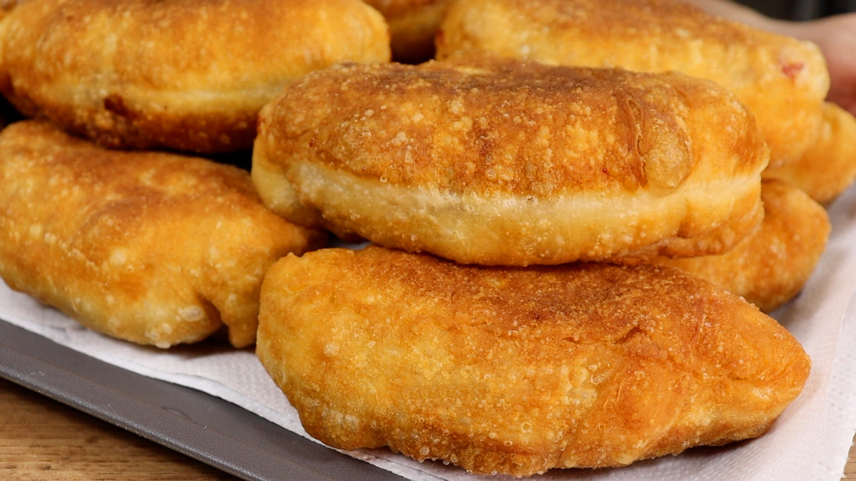 Готовые пирожки выкладываем на бумажные полотенца, чтобы убрать лишнее масло, и подаём к столу горячими. Тесто становится воздушным и ароматным, а начинка — сочной и насыщенной, благодаря добавлению крахмала.