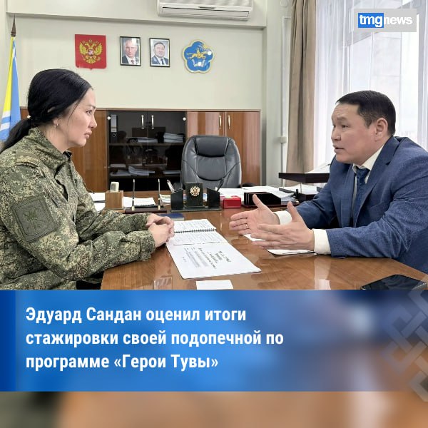 Участница кадровой программы «Герои Тувы» Айлана Биче-оол обсудила с вице-премьером Тувы Эдуардом Санданом итоги стажировки в рамках второго модуля обучения.
