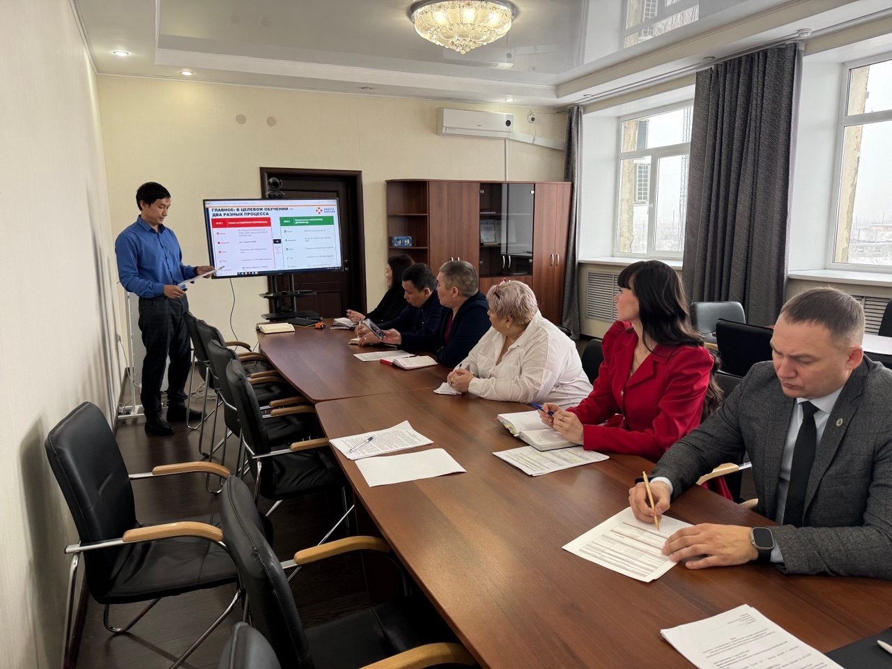 Основной темой стал механизм формирования заявок на квоту приема для целевого обучения. Заместитель директора Центра занятости Надежда Дунзунмаа представила информацию о прогнозной потребности в кадрах и порядке работы с квотами.