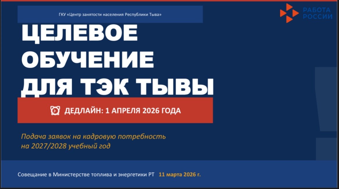 В Министерстве топлива и энергетики Республики Тыва прошло совещание по вопросам целевого обучения студентов на 2027-2028 учебный год. Мероприятие провел министр Эдуард Куулар, сообщили в ведомстве.