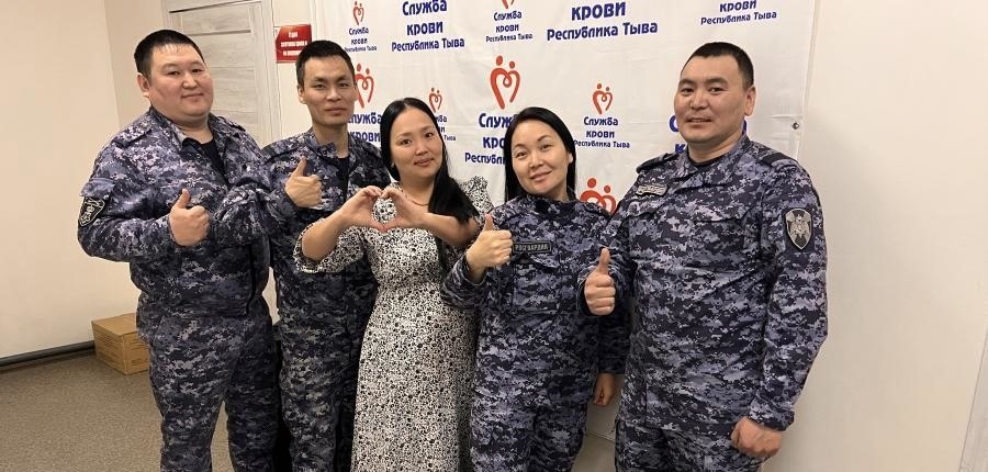 В преддверии 10-летия Росгвардии по Республике Тыва, которое отмечается 27 марта, а также 215-летия войск правопорядка, личный состав вневедомственной охраны Кызыла принял участие в акции «Добрые дела с Росгвардией», пополнив запасы крови и ее компонентов на Станции переливания крови.