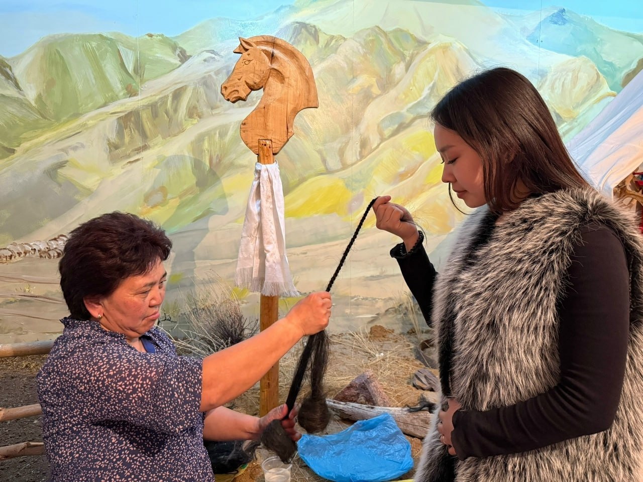 Ус-шевер авалар – Чимита Сандый-оол биле Сайлыкмаа Хунакаа амгы еде уттундуруп турар, бурун гбелеривисти ажылы – аът челинден чеп эжерин кргскен.
