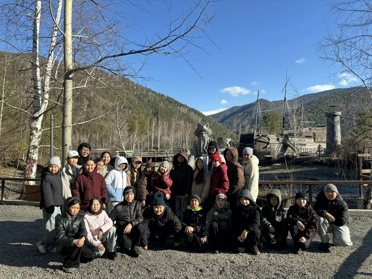 Школаны удуртулгазы, ада-иелер экскурсовод-декчи Тайгана Делгер-ооловнага сонуурганчыг аян-чорукту организастааны дээш, четтиргенин илереткен. Уруглар часкы дыштанылгазын ажыктыг эрттирип турар.