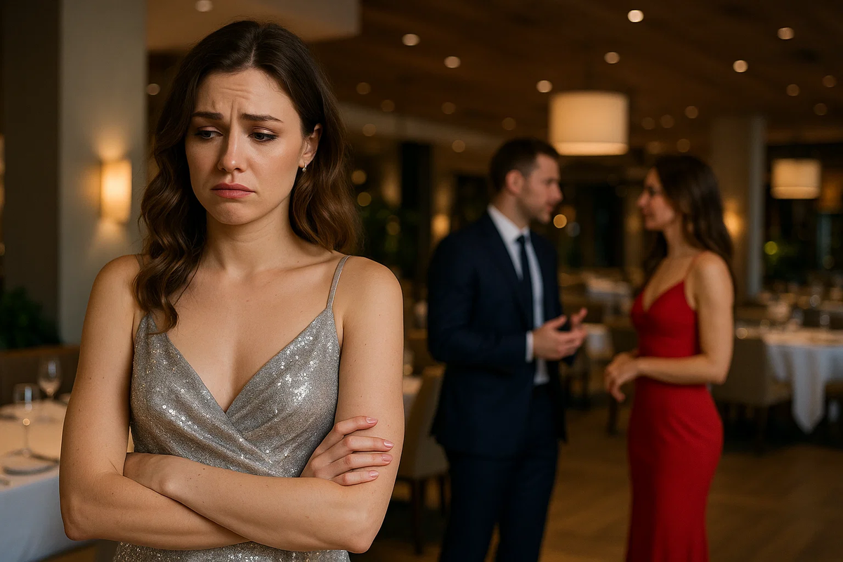 Настя стояла у входа в банкетный зал, сжимающая в руках свой элегантный клатч, когда ее взгляд упал на мужа. В центре внимания оказался Андрей, который во всей красе общался с высокой девушкой в красном платье, а ее голос звучал слишком интимно для рабочей обстановки.