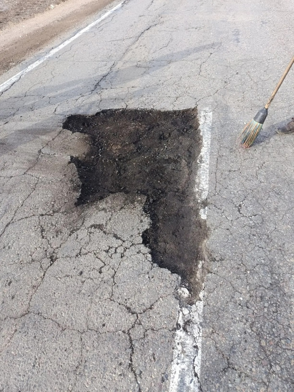 Ямочный ремонт дороги выполняет подрядная организация «Сая». Традиционно дорожные работы начинаются в мае, но из-за интенсивного движения большегрузных автомобилей износ покрытия произошел раньше сроков.