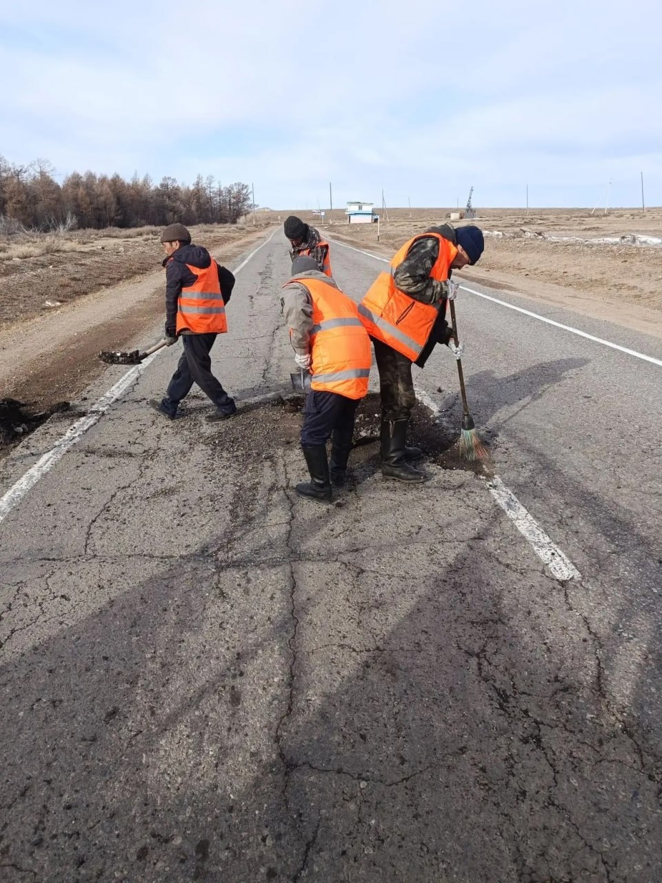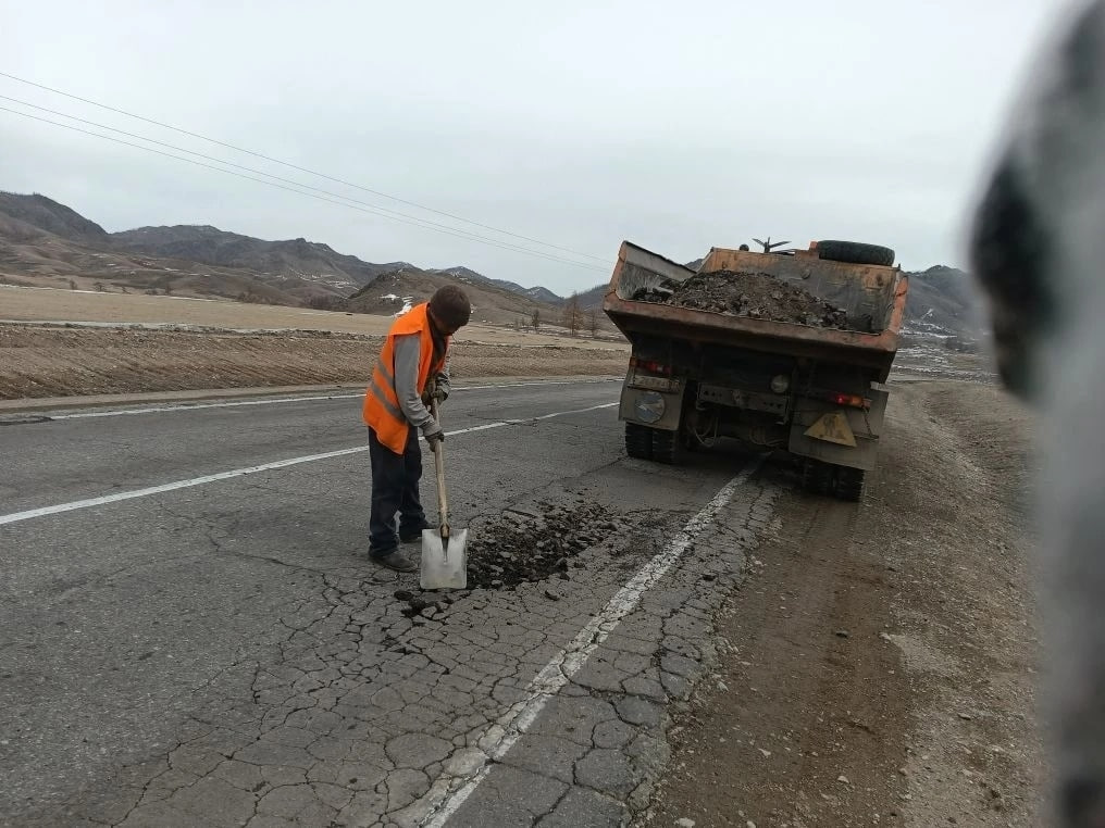 В Тес-Хемском районе на участке Самагалтай – Борбак-Тей выполняются дорожные работы по устранению ям с засыпкой грунтом.