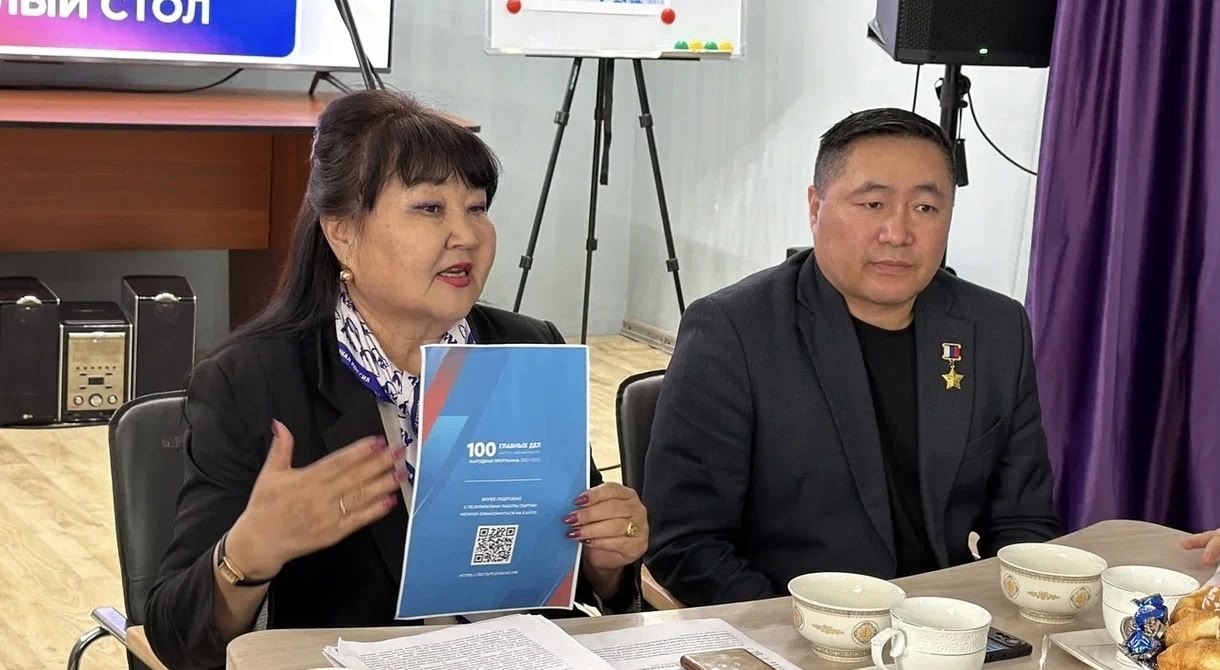Модератор встреч, депутат Верховного Хурала Республики Тыва Ульяна Монгуш представила участникам Героя России, финалиста регионального кадрового проекта «Герои Тувы» Буяна Куулара как кандидата на предварительное голосование в депутаты Государственной Думы от партии «Единая Россия».