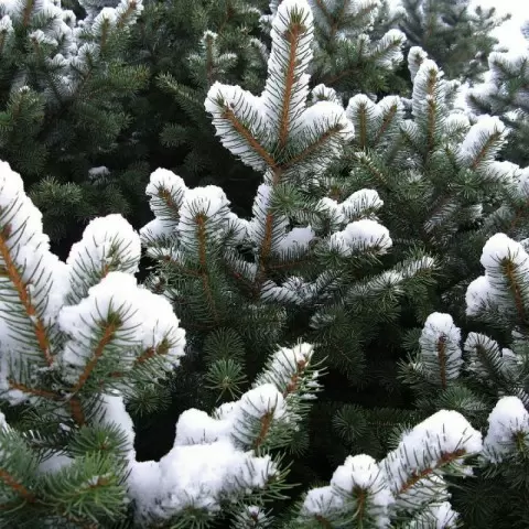 Елка обыкновенная — это классика зимнего сада. Ее пирамидальная форма и густая хвоя создают великолепный фон, который можно дополнить новогодними декорациями, внося атмосферу праздника. Среди других вечнозеленых растений, которые могут добавить живописности, выделяются: