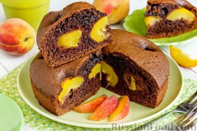 Шоколадный пирог с персиками