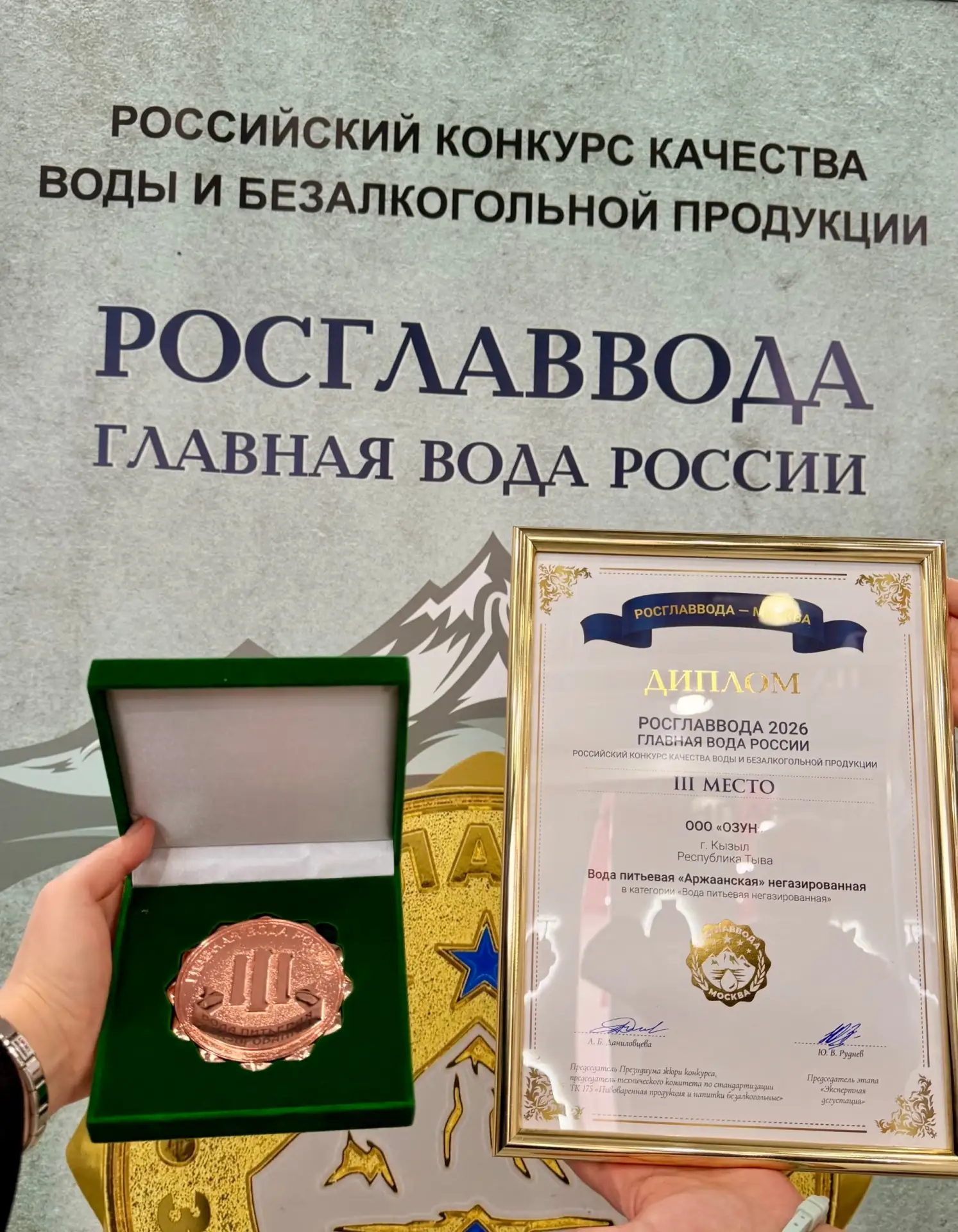 В церемонии награждения, в которой приняла участие советник Полномочного представителя Республики Тыва в г. Москве Виктория Сурен, в номинации «Вода питьевая негазированная» бронзовыми наградами были отмечены два тувинских производителя – ООО «З» и ООО «БАЙ-ХААК», представителям которых вручили медали и дипломы конкурса.