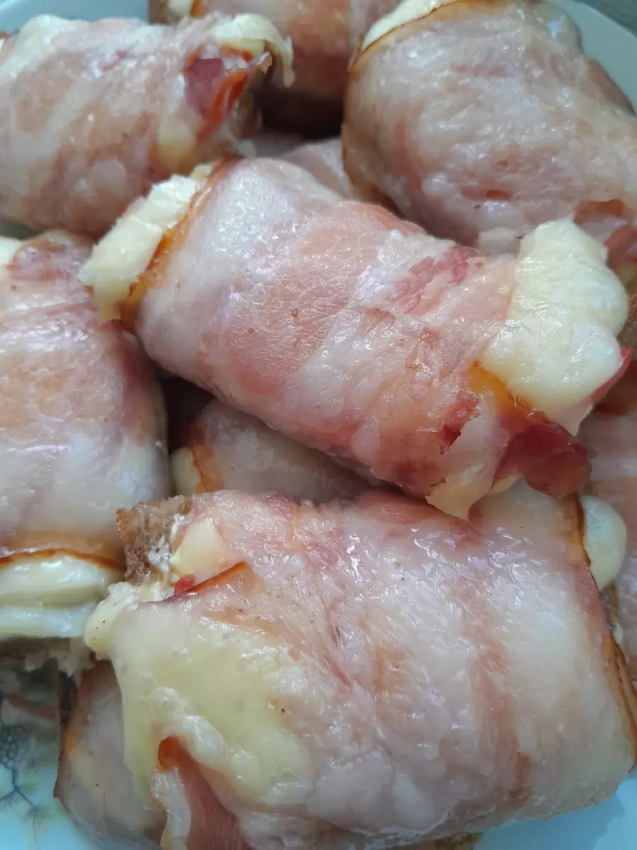 Для начала разогрейте духовку до 180°C. Намажьте хлеб маслом и посыпьте специями. На каждый ломтик положите 1-2 кружочка помидора и накройте сыром. Оберните каждый бутерброд несколькими полосками бекона и запекайте на протяжении 12-15 минут до золотистой корочки. Подавайте горячими, добавив немного свежей зелени для украшения.