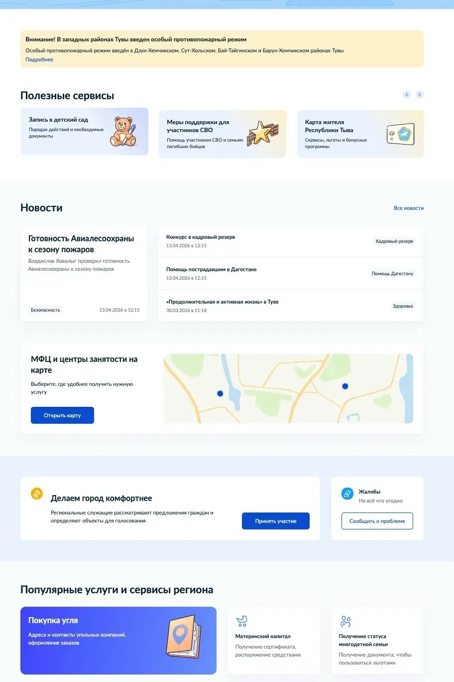 По информации Министерства цифрового развития Тувы, раздел создан совместно с федеральным министерством в рамках пилотного проекта, стартовавшего в январе 2026 года. Его внедрение не потребовало финансовых затрат со стороны республики. Тува стала одиннадцатым и завершающим регионом в проекте, объединяющем 11 субъектов РФ.