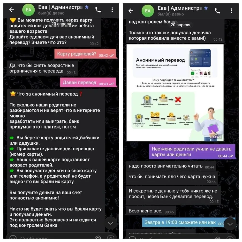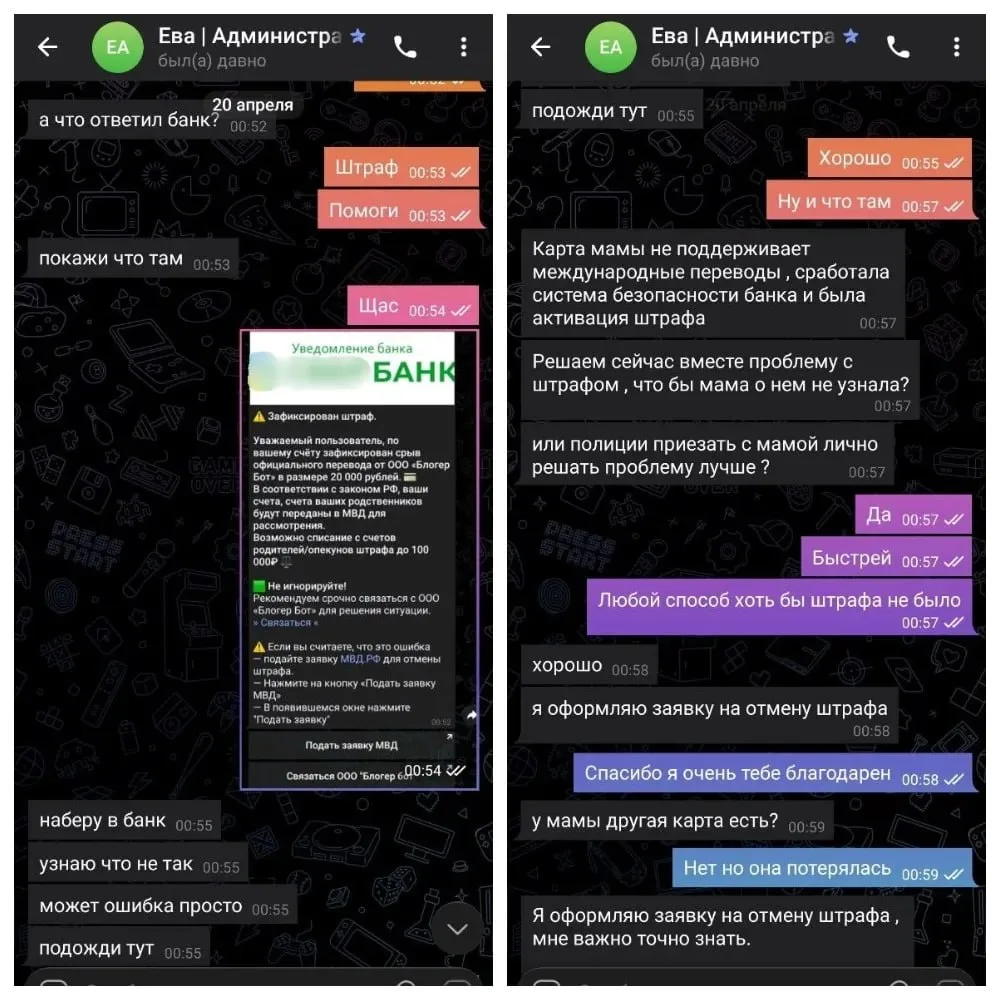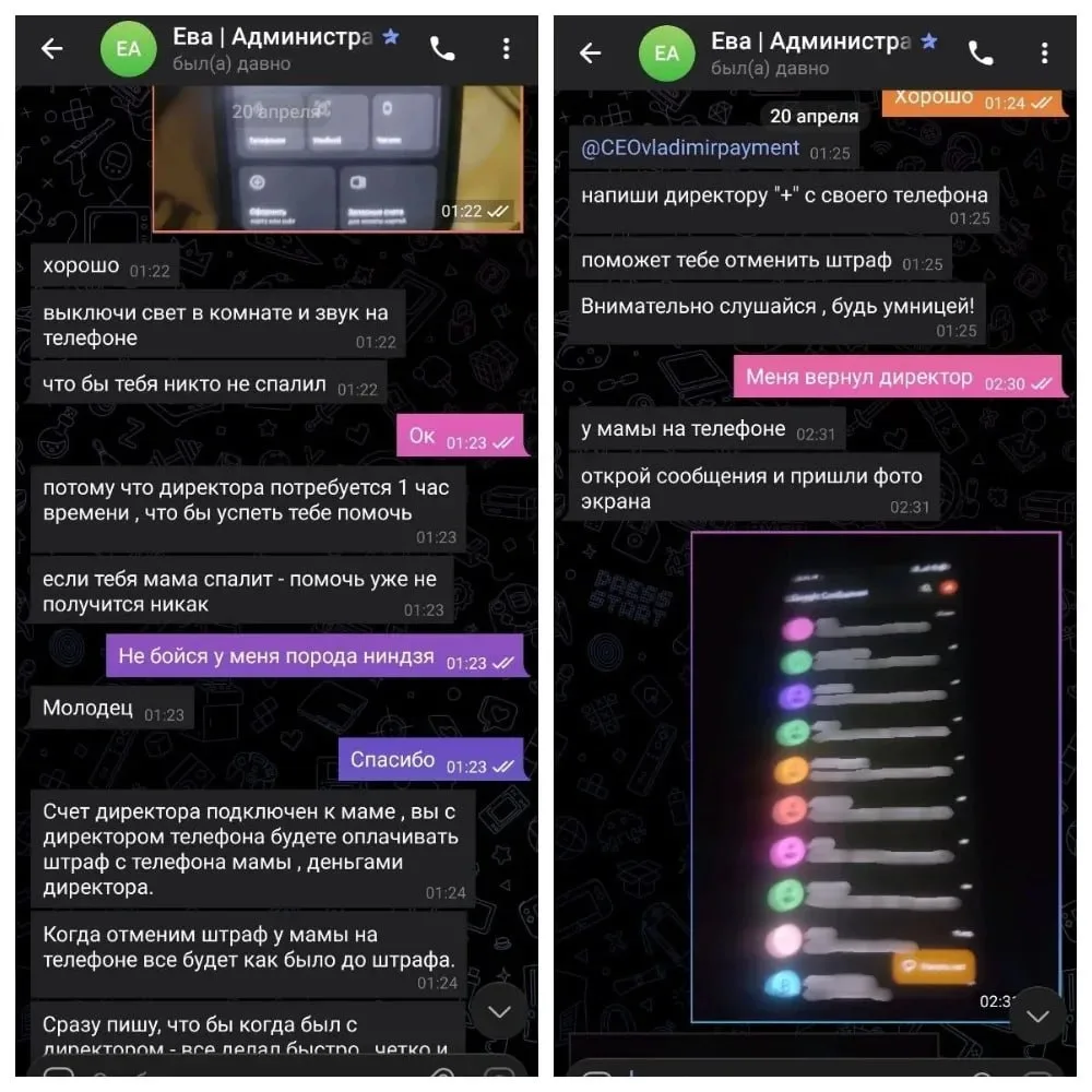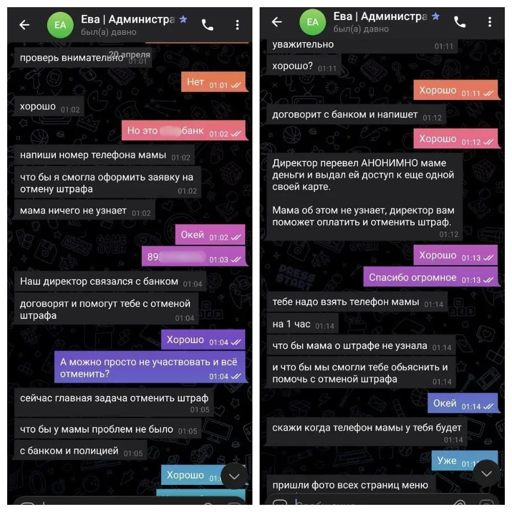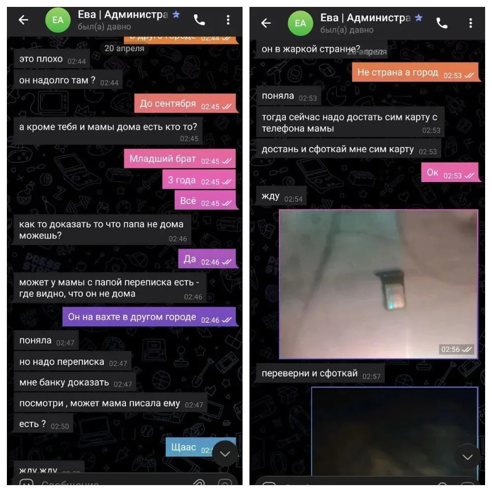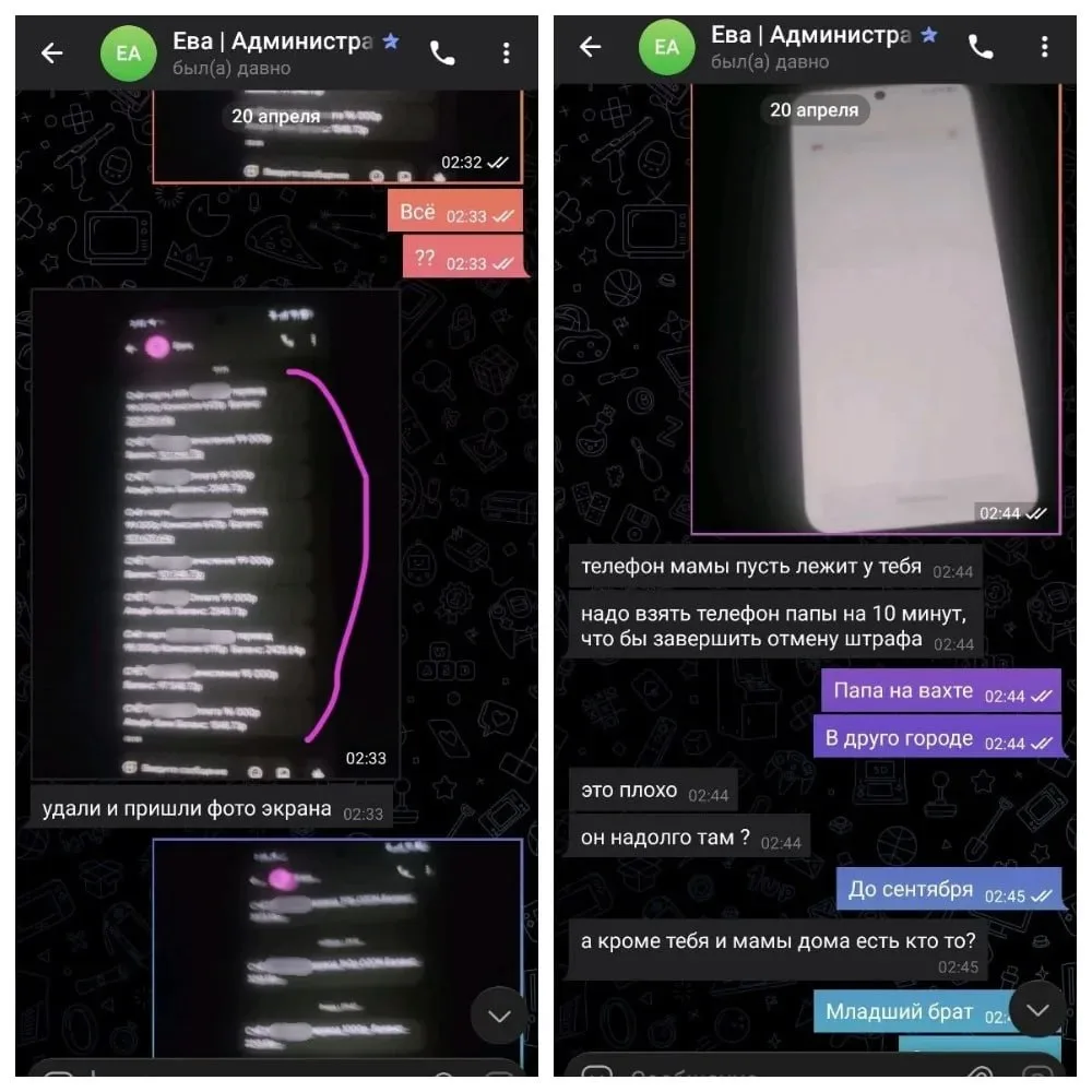 Далее мошенники использовали фиктивные чеки, имитацию банковских уведомлений, запугивали мальчика "штрафами" и обращением в полицию, если он не оформит "приз" через банковскую карту родителей. Испугавшись, ребенок получил доступ к телефону матери и под диктовку совершил шесть переводов на сторонние счета. После этого мошенники пытались скрыть следы — требовали удалить сообщения, отключить уведомления банка и даже заставили его разрезать сим-карту.