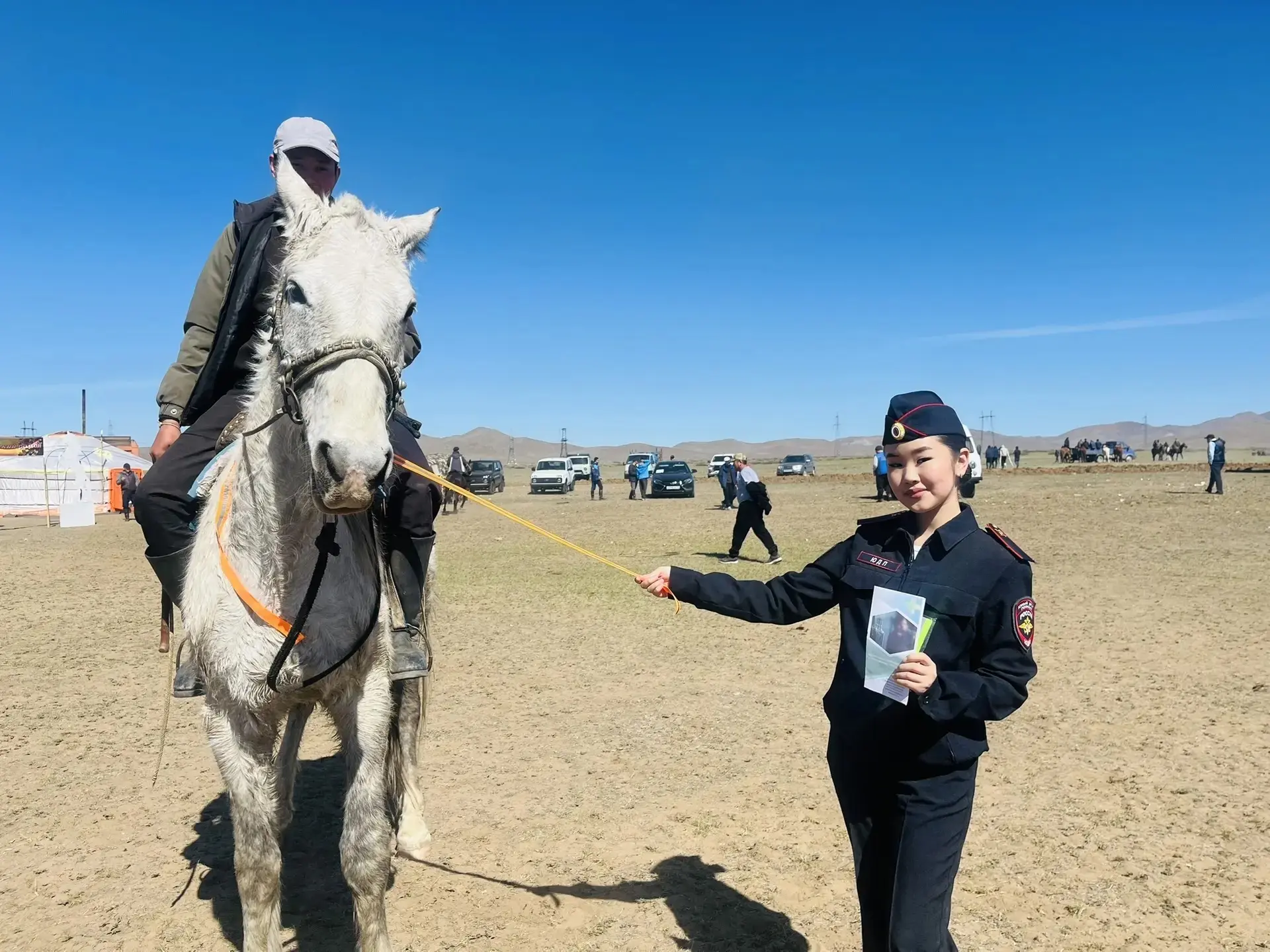 Инспектор по делам несовершеннолетних, лейтенант полиции Кежикмаа Ондар провела беседу по предупреждению детского травматизма на конных скачках. Кроме того, инспектором по пропаганде безопасности дорожного движения, лейтенантом полиции Юлианой Кара-Сал проведена акция «Безопасный путь для коней».