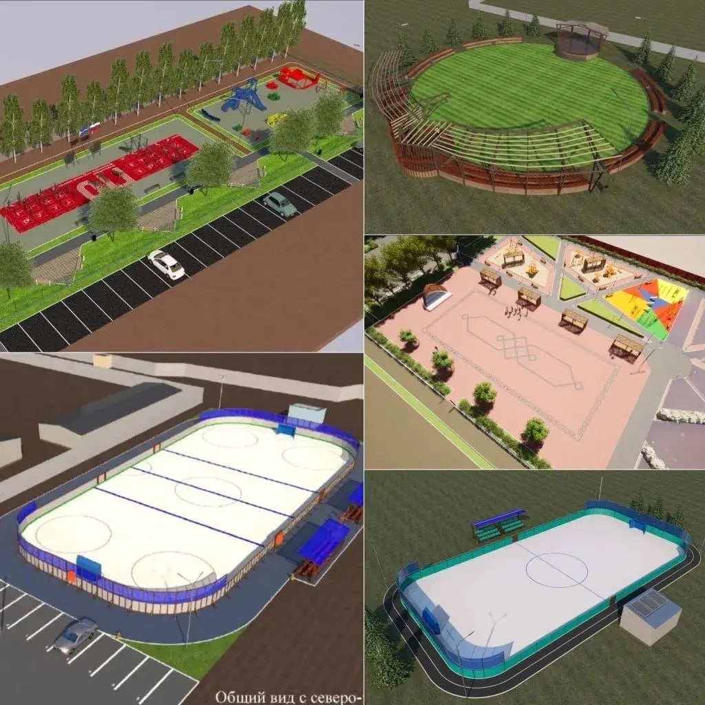 продолжение благоустройства спортивной зоны с хоккейной коробкой в селе Эрги-Барлык.